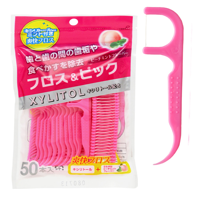 Clesh キシリトール フロス&ピック ピーチミントフレーバー 50本