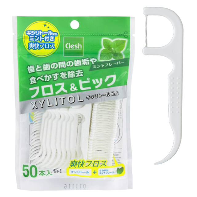 Clesh キシリトール フロス&ピック ミント 50本